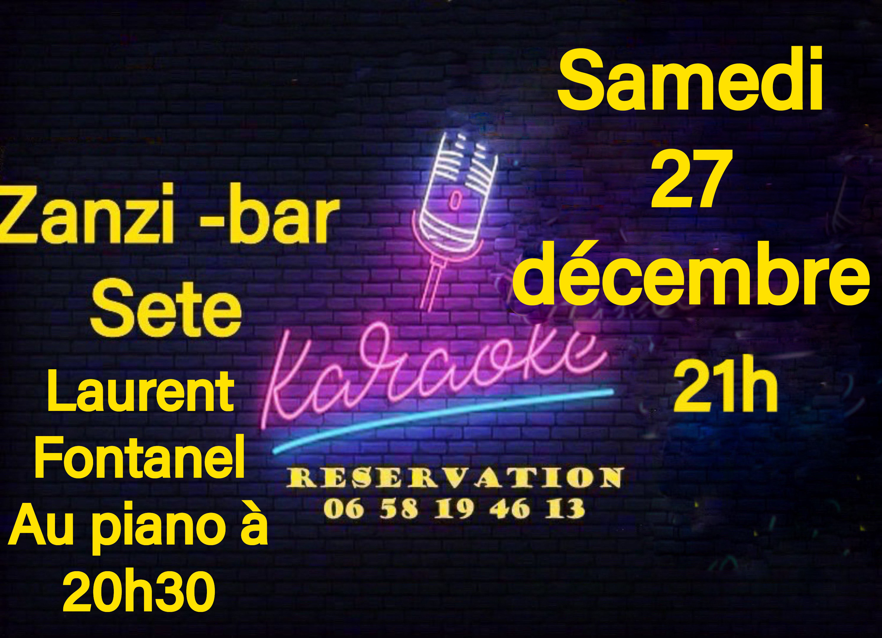 karaoké dansant samedi 27 décembre au zanzi-bar à sete à 21 h