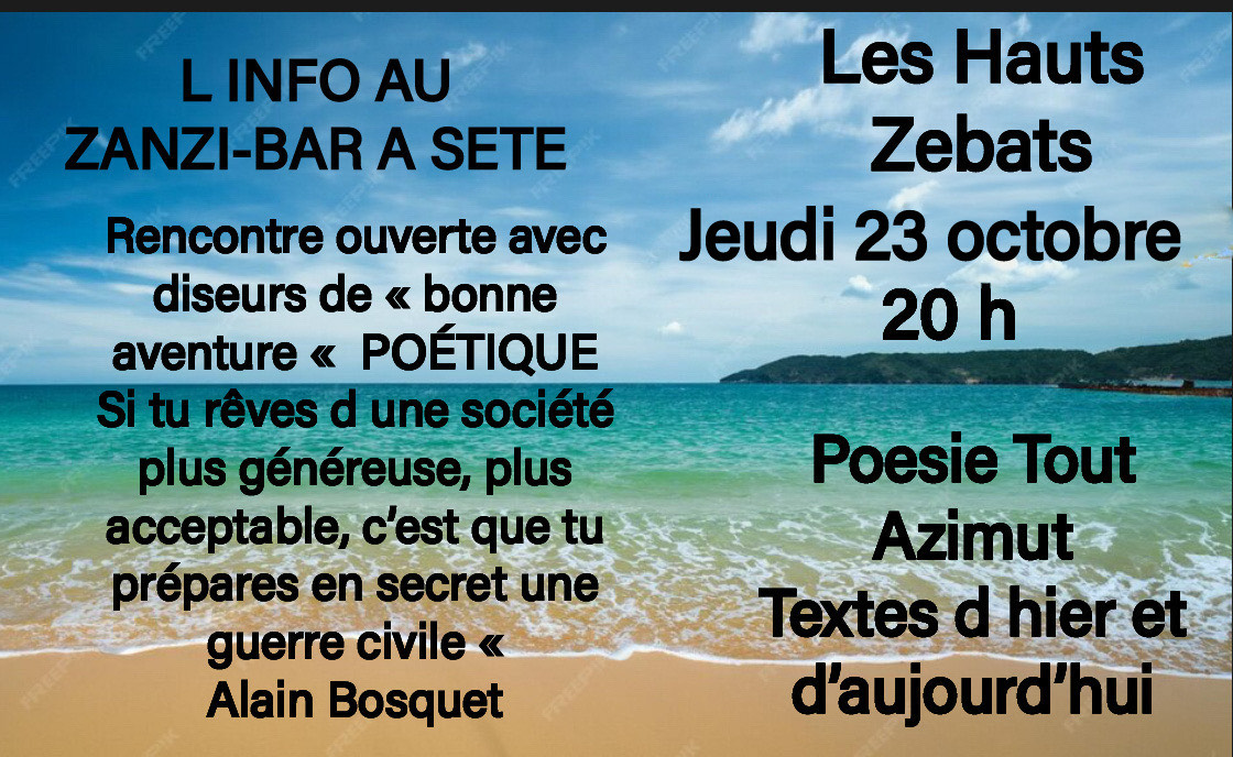 soirée poésie jeudi 23 octobre au zanzi-bar à sète 20 h