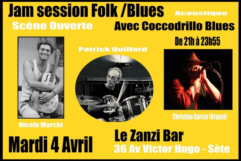 Scène ouverte au zanzi-bar à Sete à 21 h